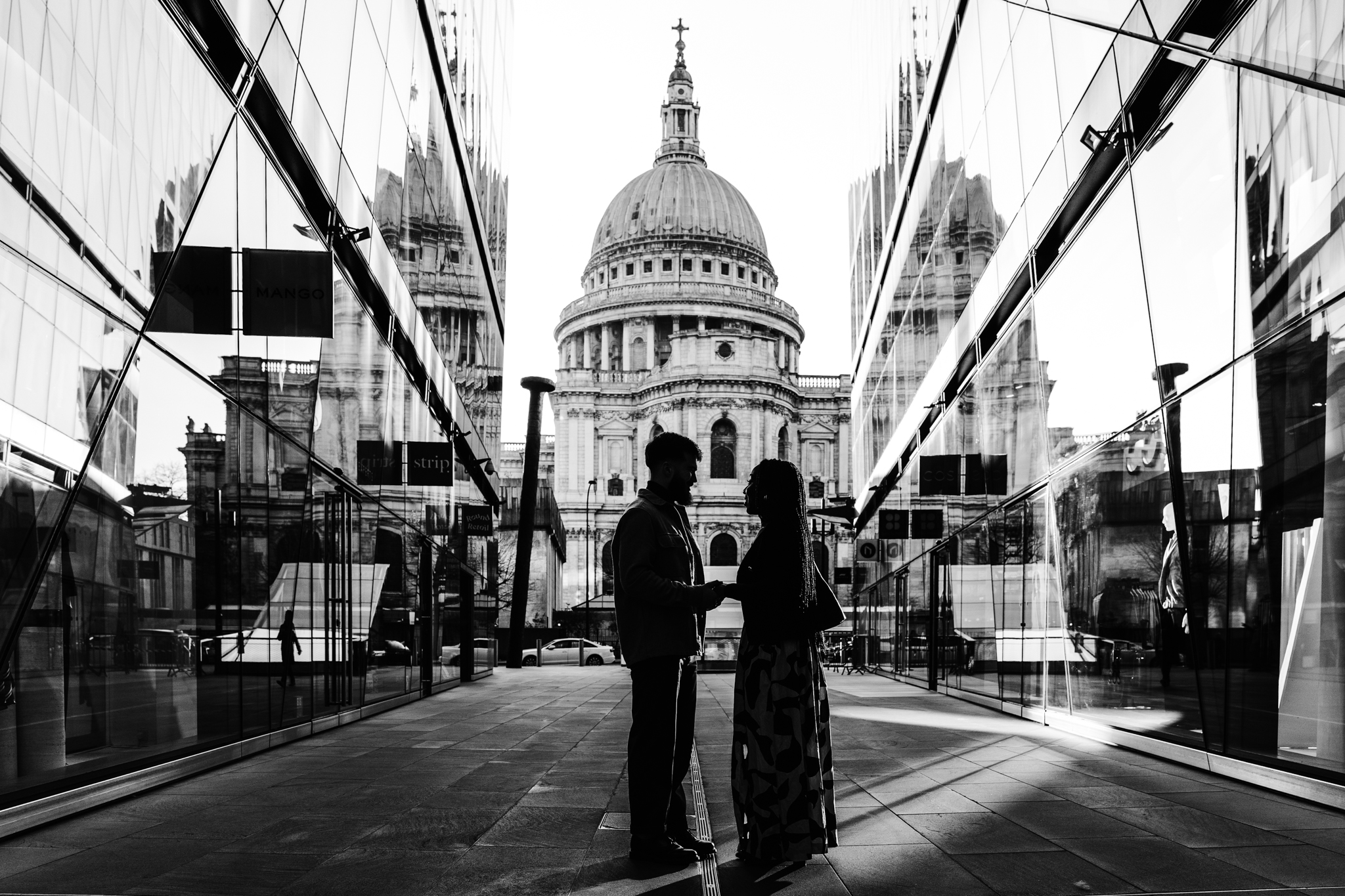 Isaac proposed to his girlfriend Naomi (with some help from his best friend Stephan) in front of St Paul’s Cathedral in London! Isaac worked together with Stephan to find a stunning location near St Paul’s where he could propose and came up with his gem of a spot. Stephan wanted to be there to video the proposal for his friend so I made Stephan wear sunglasses and a cap to disguise himself just incase Naomi recognised him (it was all a surprise for her!) The proposal went so well, Isaac got down on one knee in this beautiful shaft of golden light and a few people ended up gathering around then cheering for them when Naomi said yes. Here’s some images from my time with them.